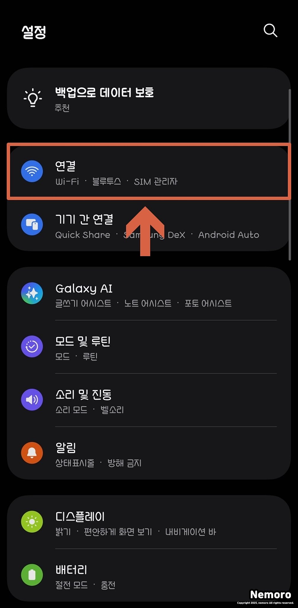 와이파이 QR코드 생성하는 방법은 갤럭시 설정에서 쉽게 하실 수 있는데요. [갤럭시 설정] → [연결] → [Wi-Fi] 순서대로 선택해 주시면 됩니다.