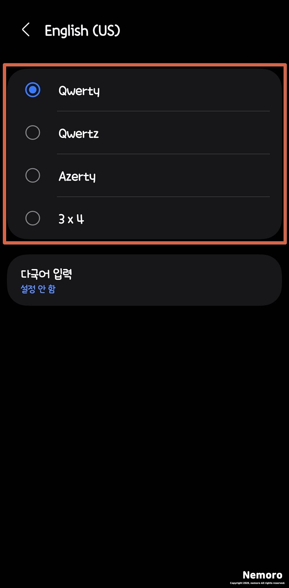 영어 역시 Qwerty 외에도 지역에 따른 Qwertz, Azerty 혹은 피처폰 방식의 3x4 배열을 선택할 수 있어 사용자 취향에 맞는 커스터마이징이 가능합니다.