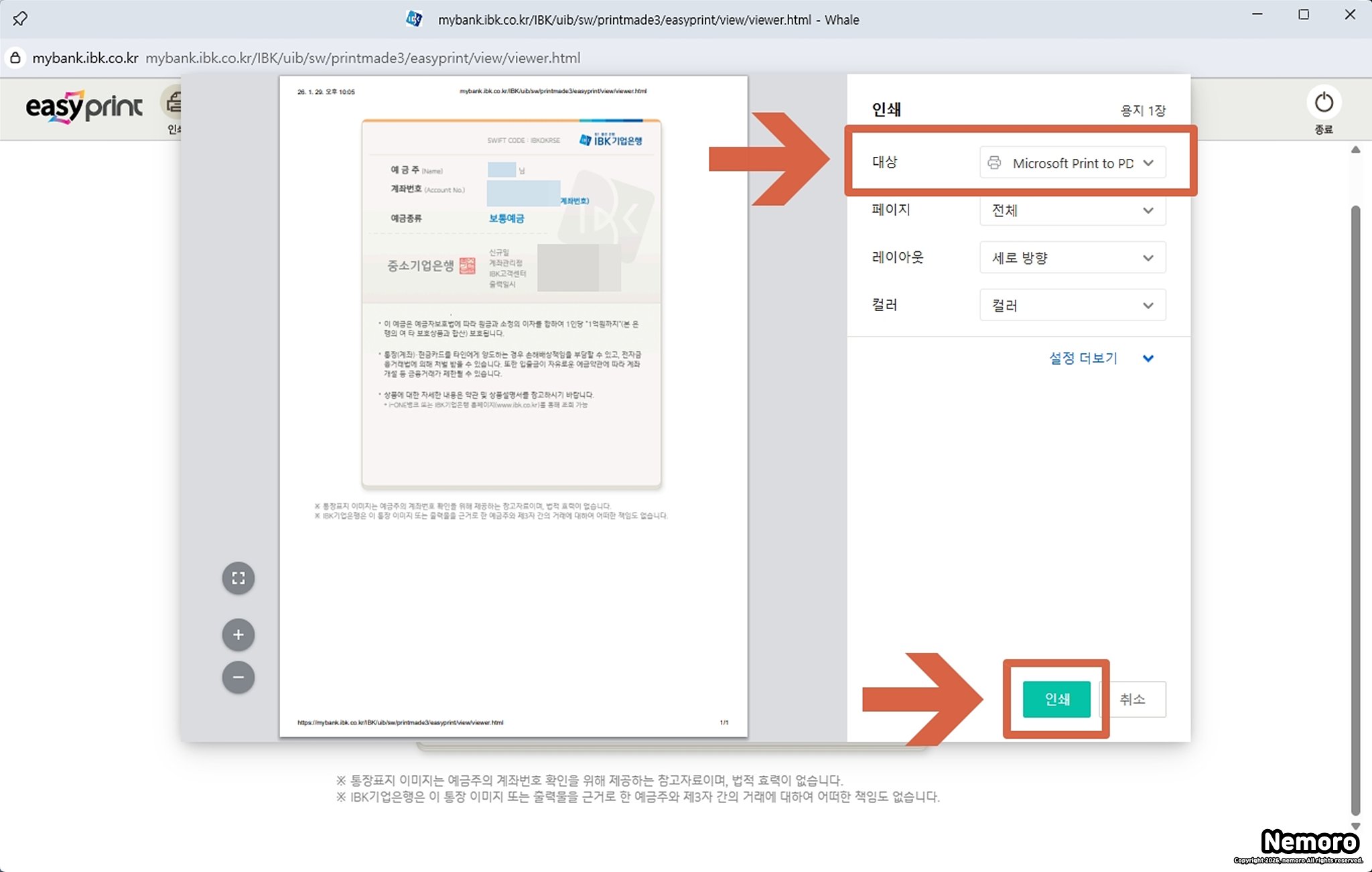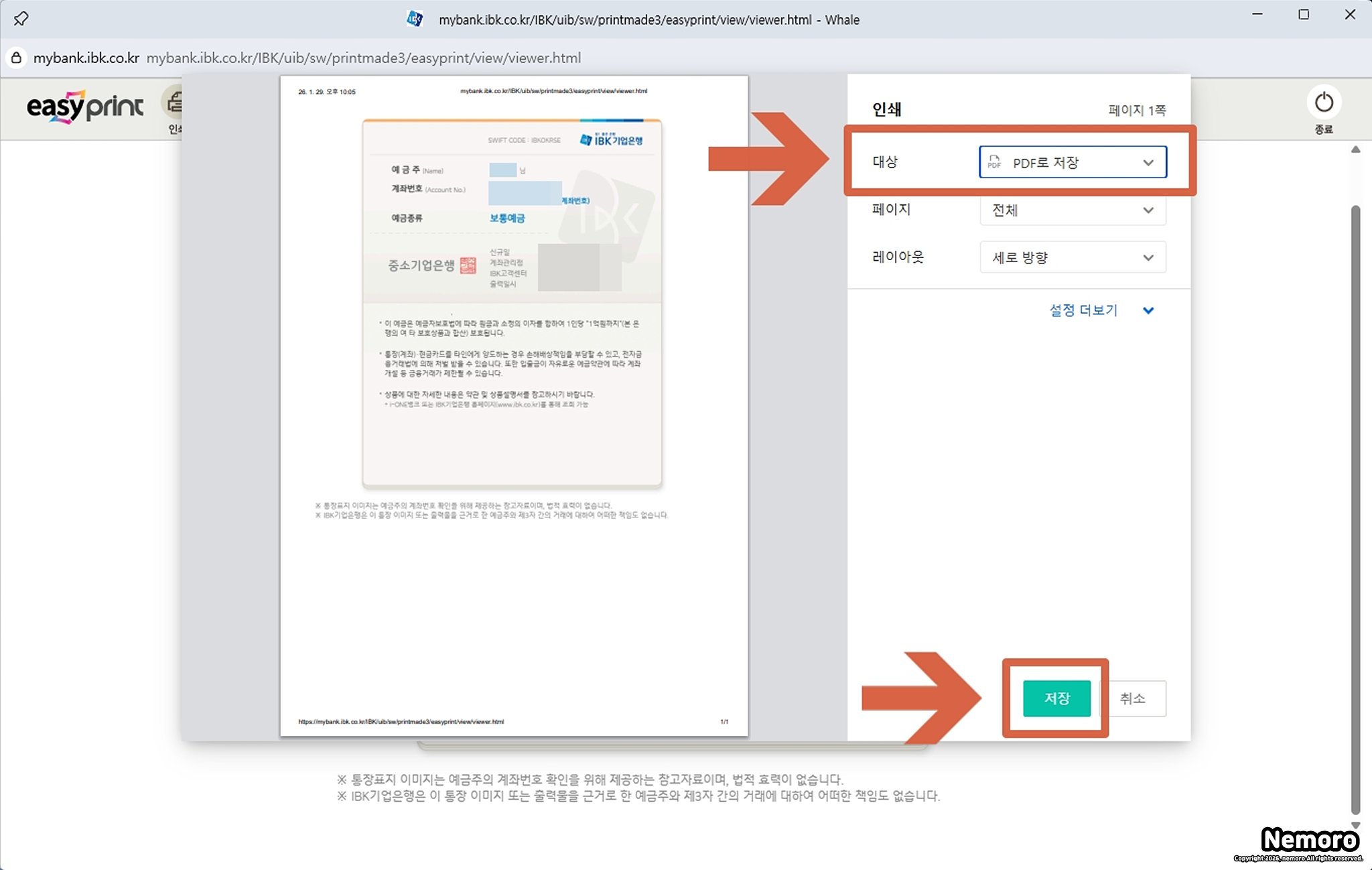 기업은행 통장 사본 인터넷 출력 방법 - PDF 파일로 저장까지 한 번에!