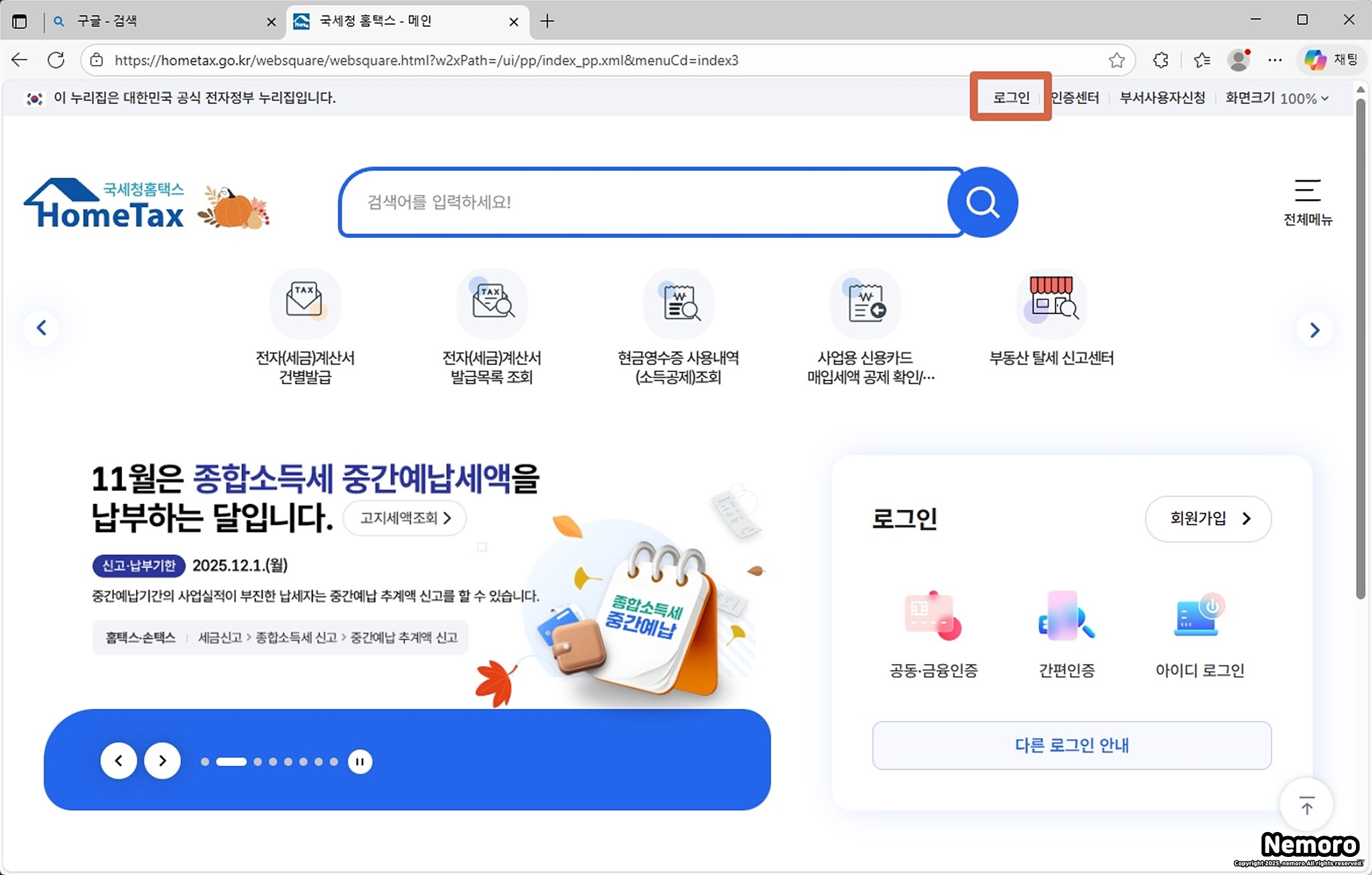 홈택스 사이트 접속하기