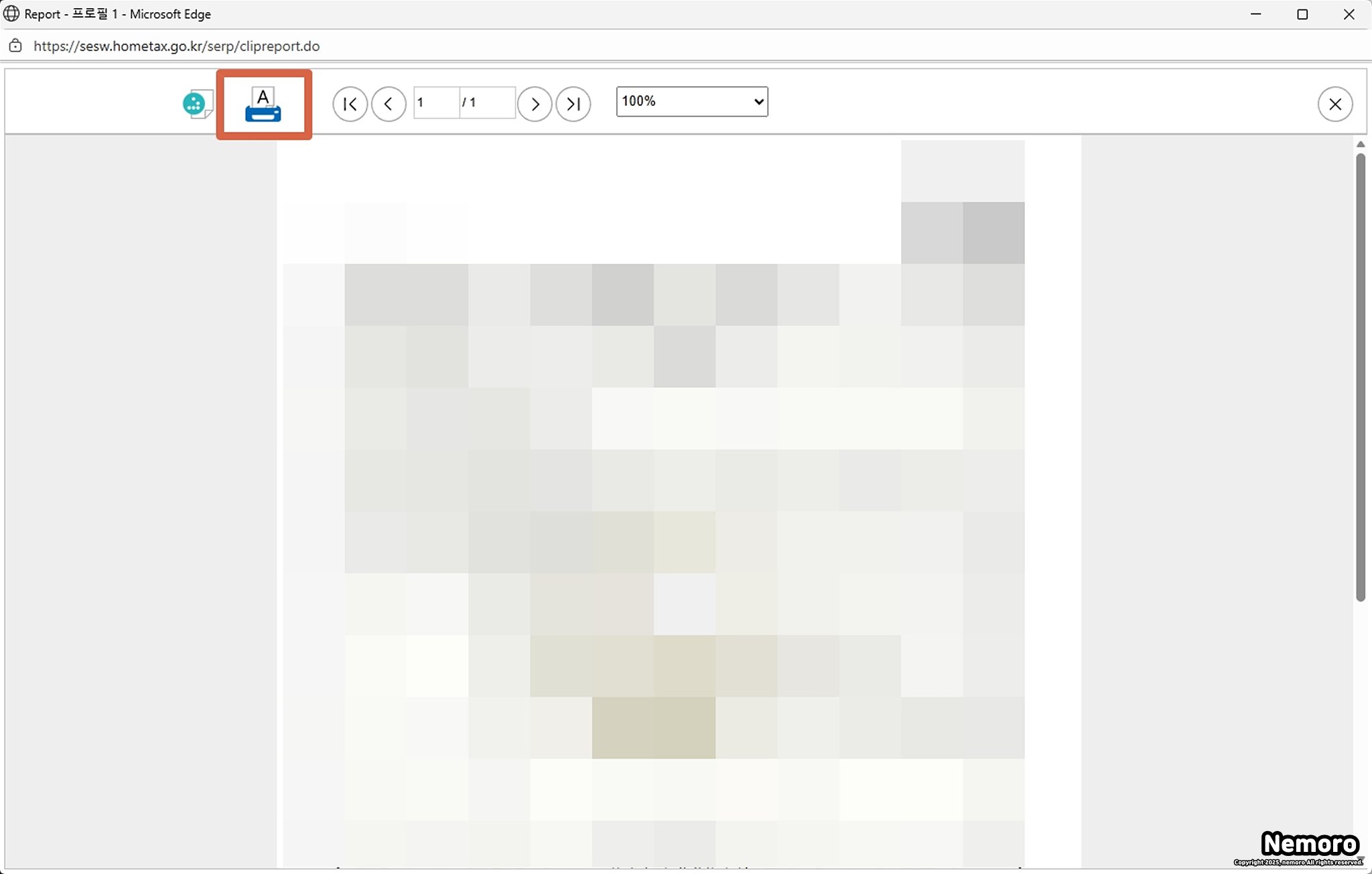 사업자 등록증명 페이지가 생성되면 좌측 상단에 있는 프린터 모양 아이콘을 클릭해서 출력하시면 됩니다.