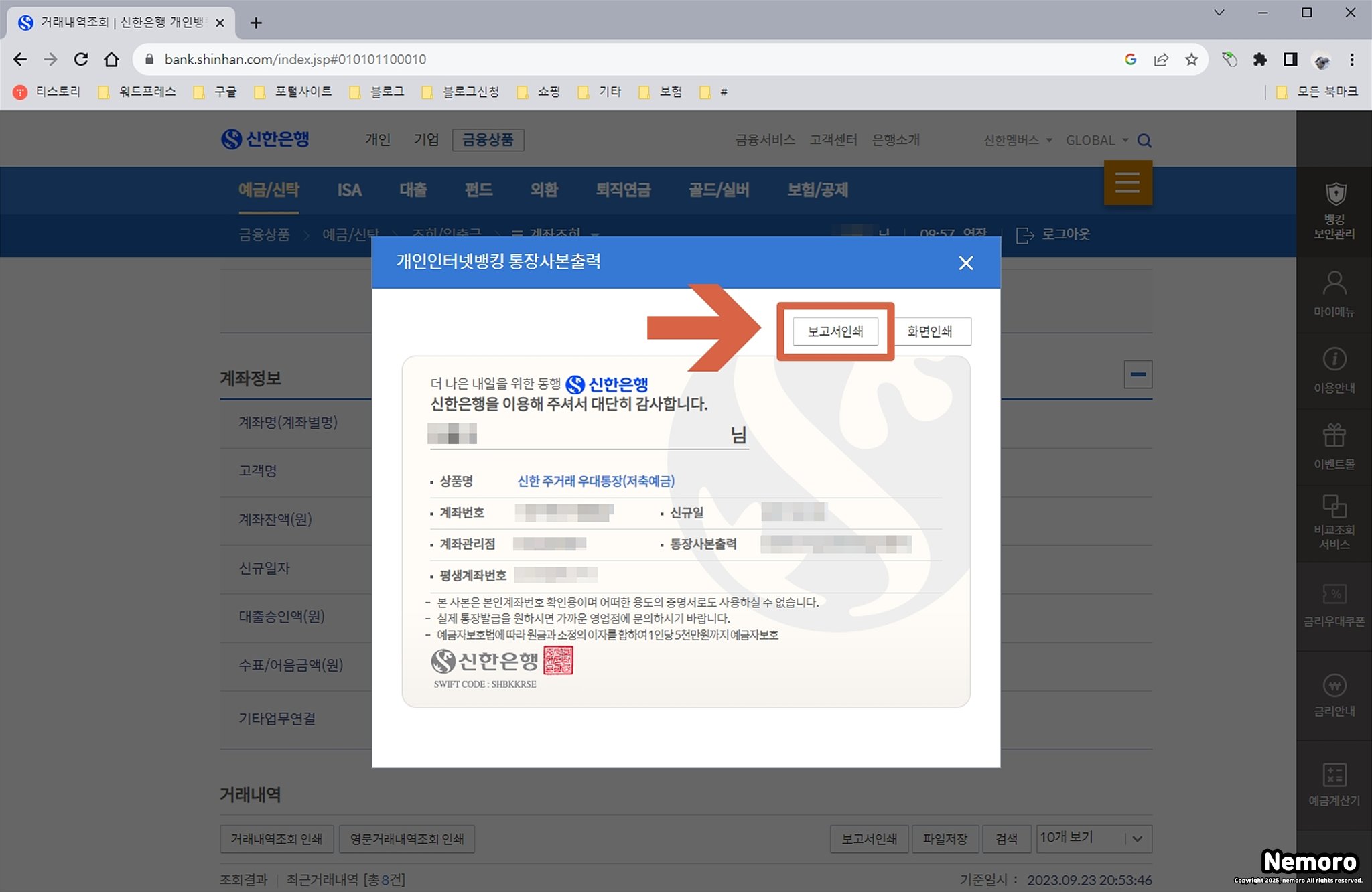 안녕하세요. 네모로입니다. 오늘은 신한은행 통장 사본 인터넷 출력 방법 (PDF 파일 저장)에 대해서 블로그에 적어보려고 합니다.