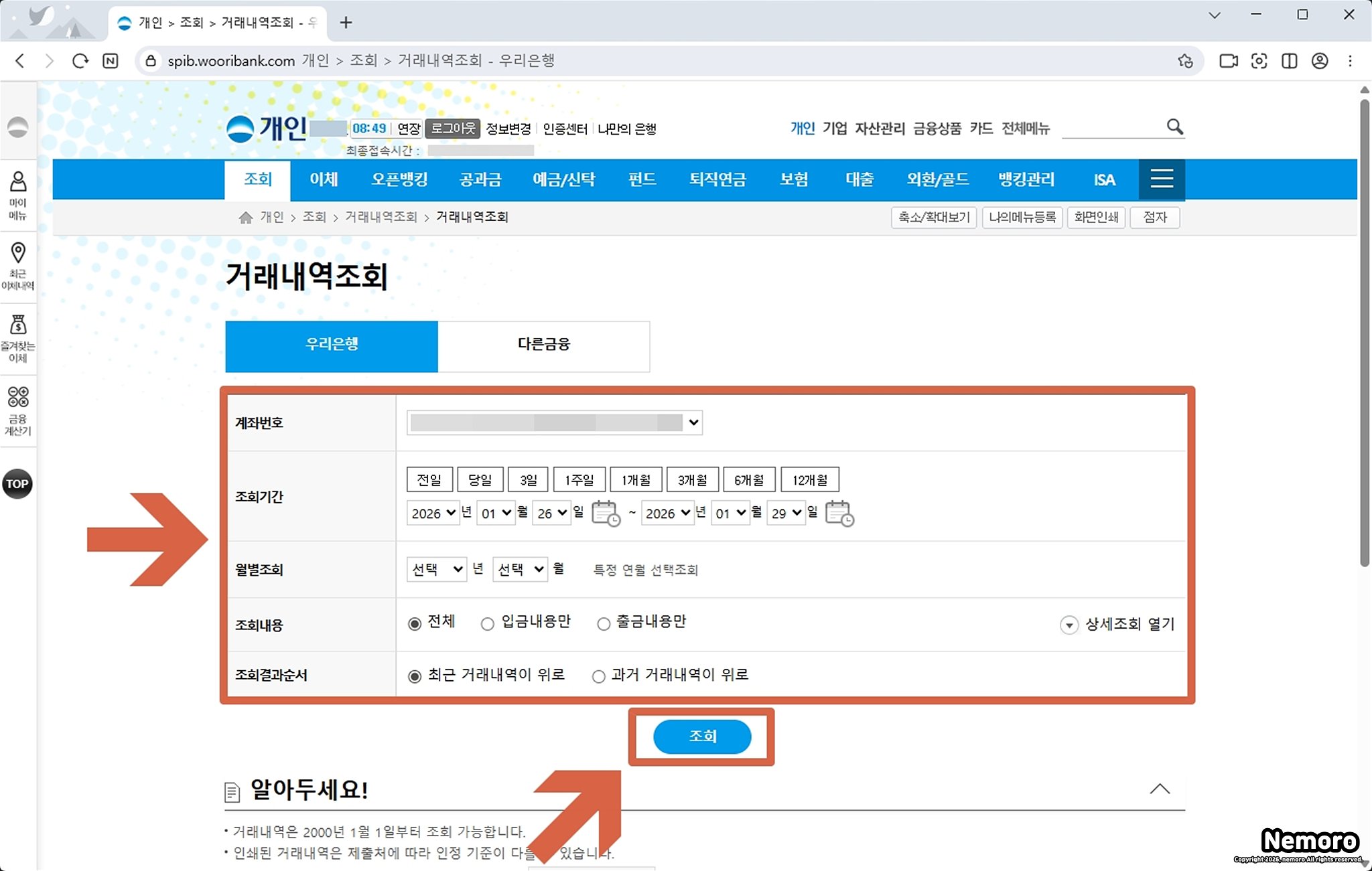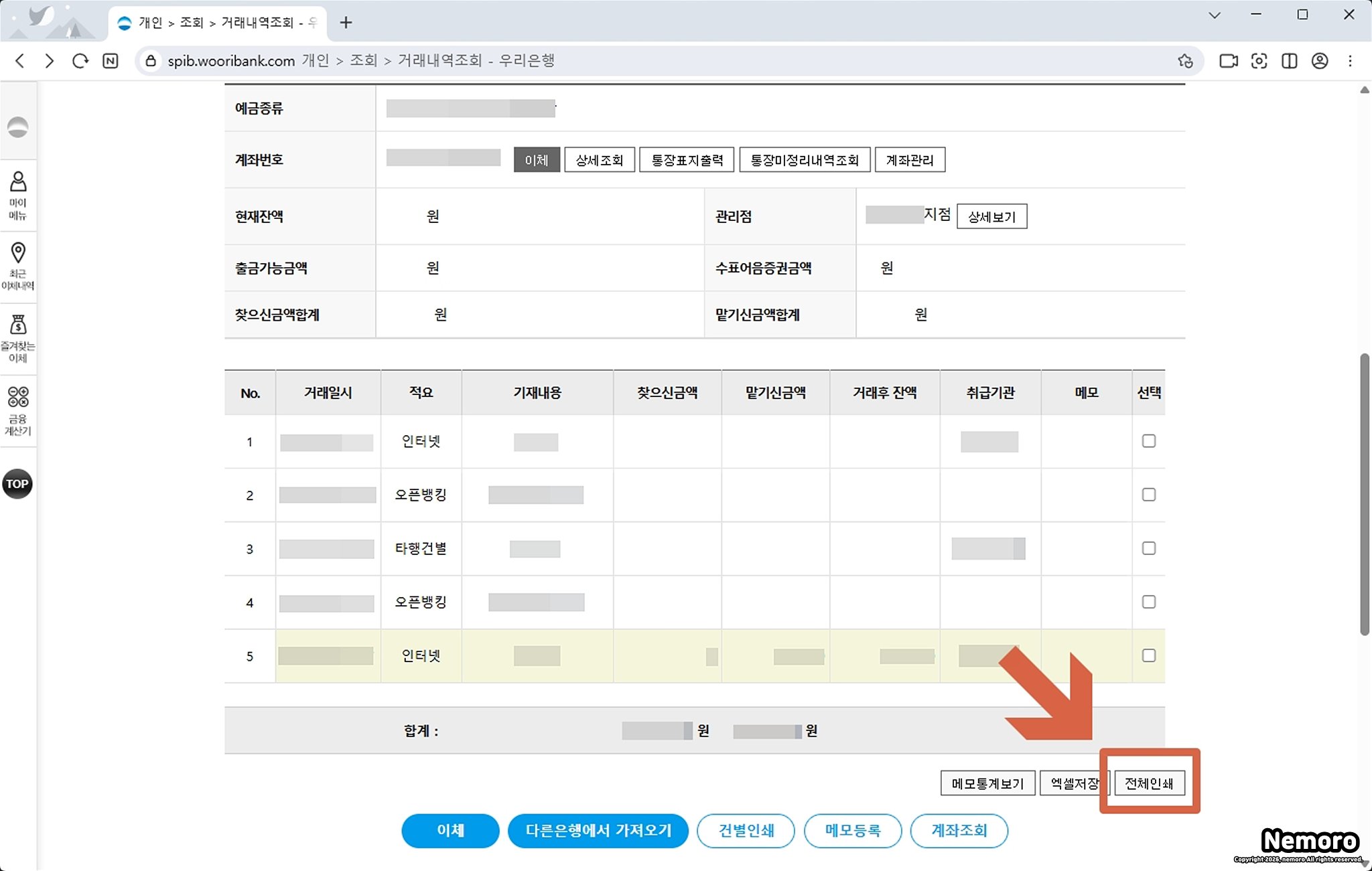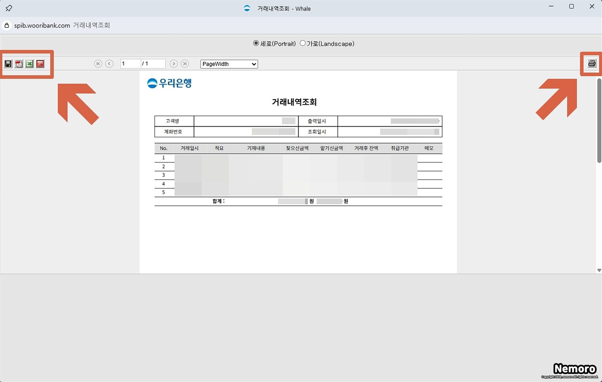 안녕하세요. 네모로입니다. 오늘은 우리은행 거래 내역 조회 및 출력 방법 - 엑셀, PDF 파일로 저장까지 한 번에! 에 대해서 블로그에 적어보려고 합니다.