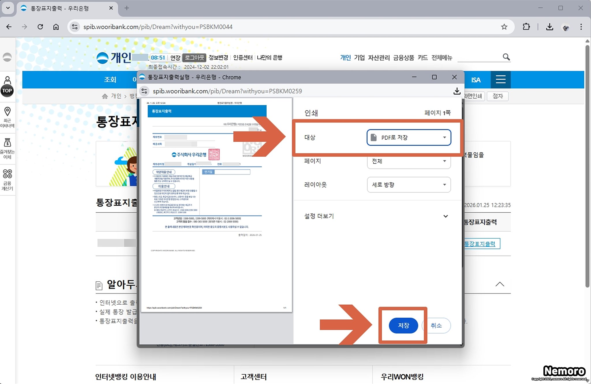 안녕하세요. 네모로입니다. 오늘은 우리은행 통장 사본 인터넷 출력 방법 - PDF 저장까지 간편하게에 대해서 블로그에 적어보려고 합니다.