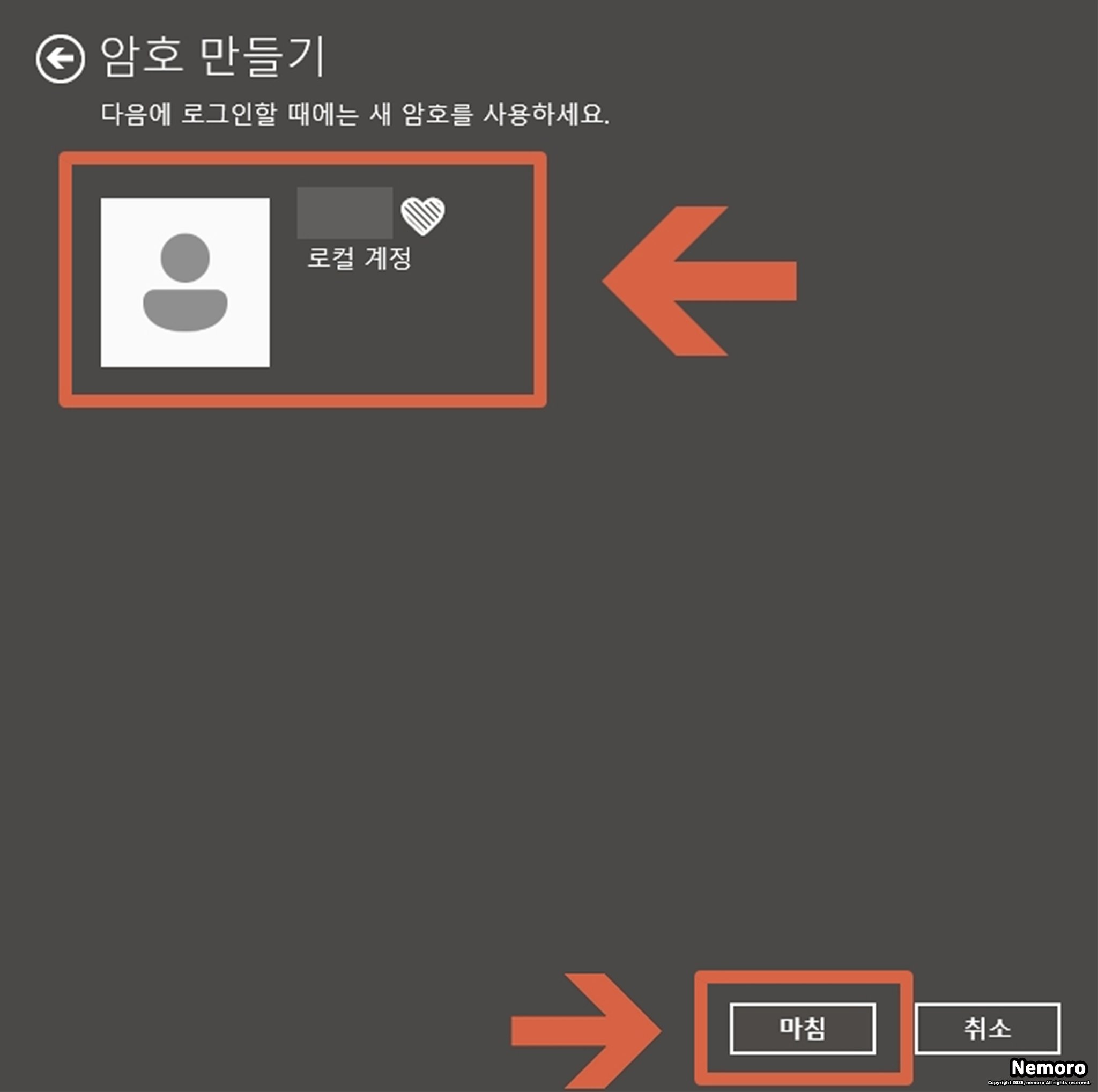 새 암호 만들기 및 설정 완료