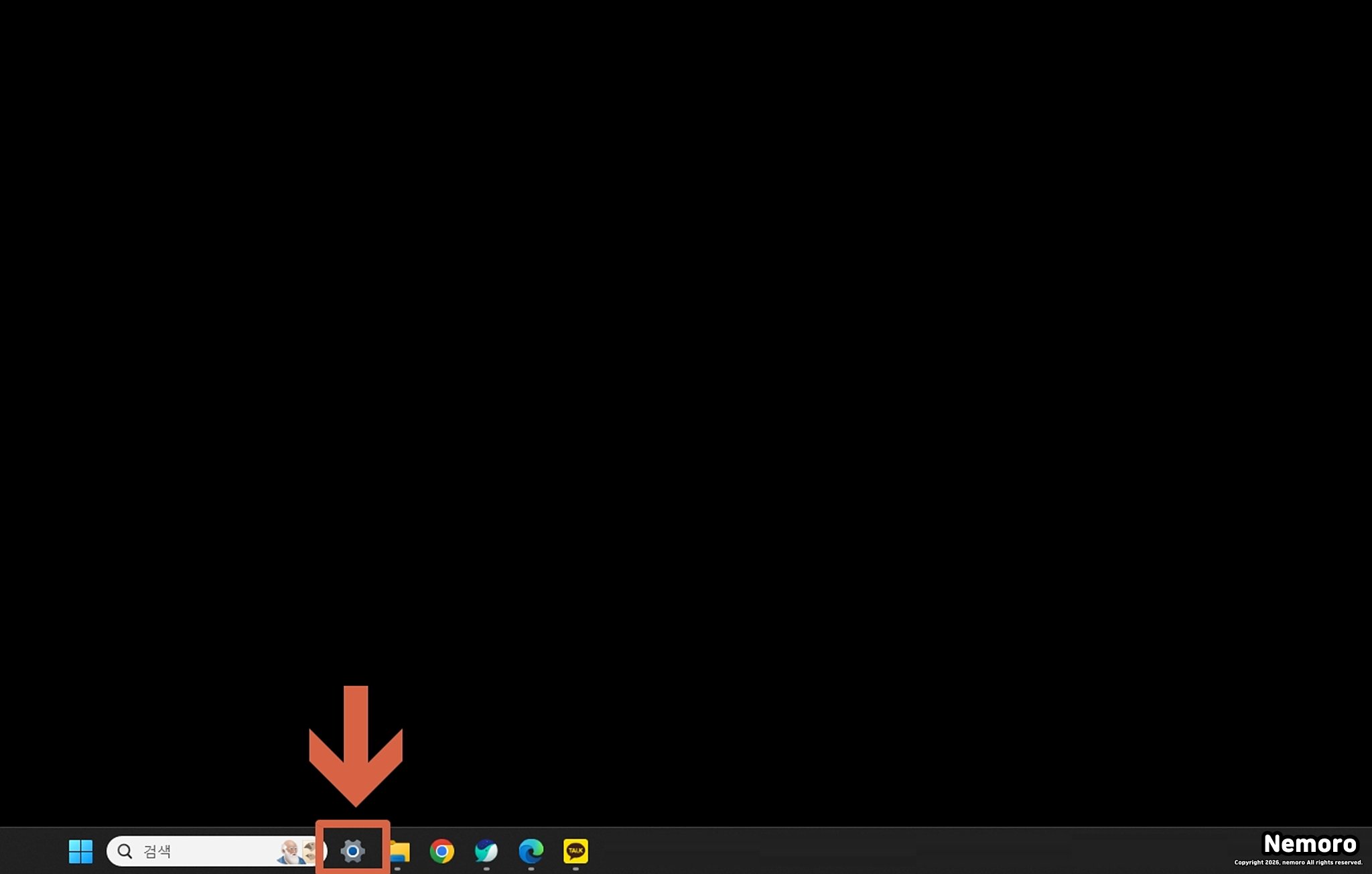 가장 먼저 윈도우 초기화 작업을 시작하기 위해 설정 창을 열어주어야 합니다. 화면 하단에 위치한 작업표시줄에서 톱니바퀴 모양의 [설정] 아이콘을 찾아 클릭해 주시거나 [윈도우 로고 키 + I] 단축키를 사용하여 윈도우 설정을 실행해 주세요.