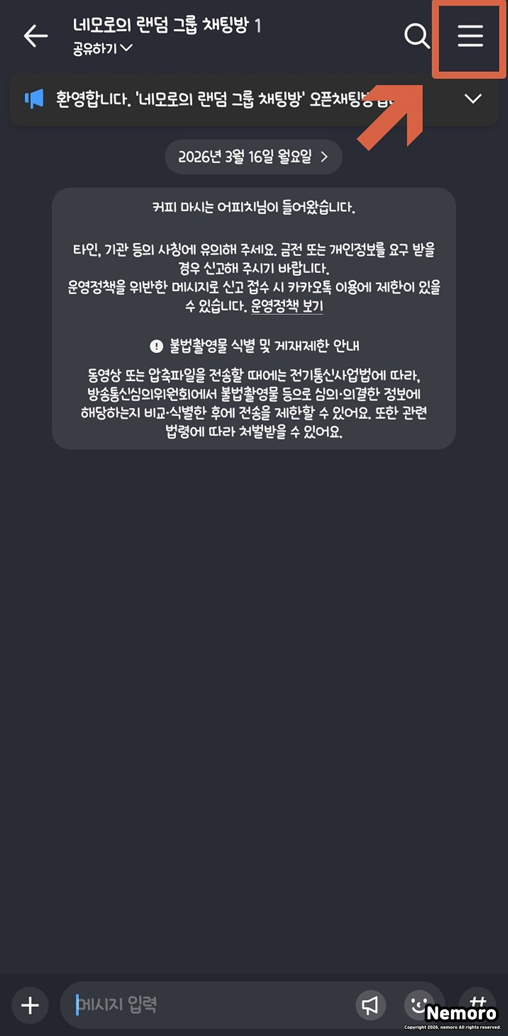 안녕하세요. 네모로입니다. 오늘은 카카오톡 오픈채팅방 만드는 방법 및 삭제 관리 가이드에 대해서 블로그에 적어보려고 합니다.