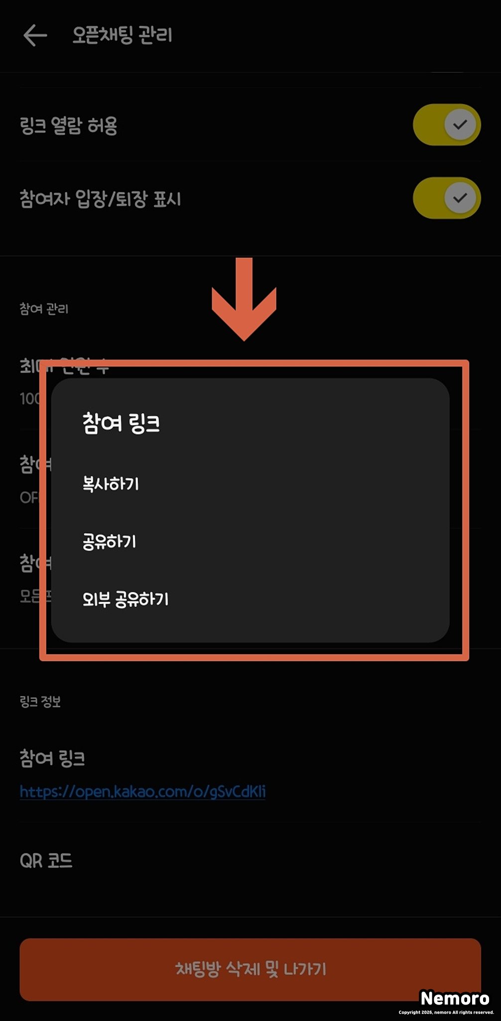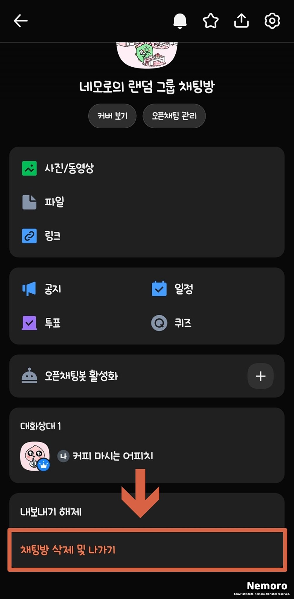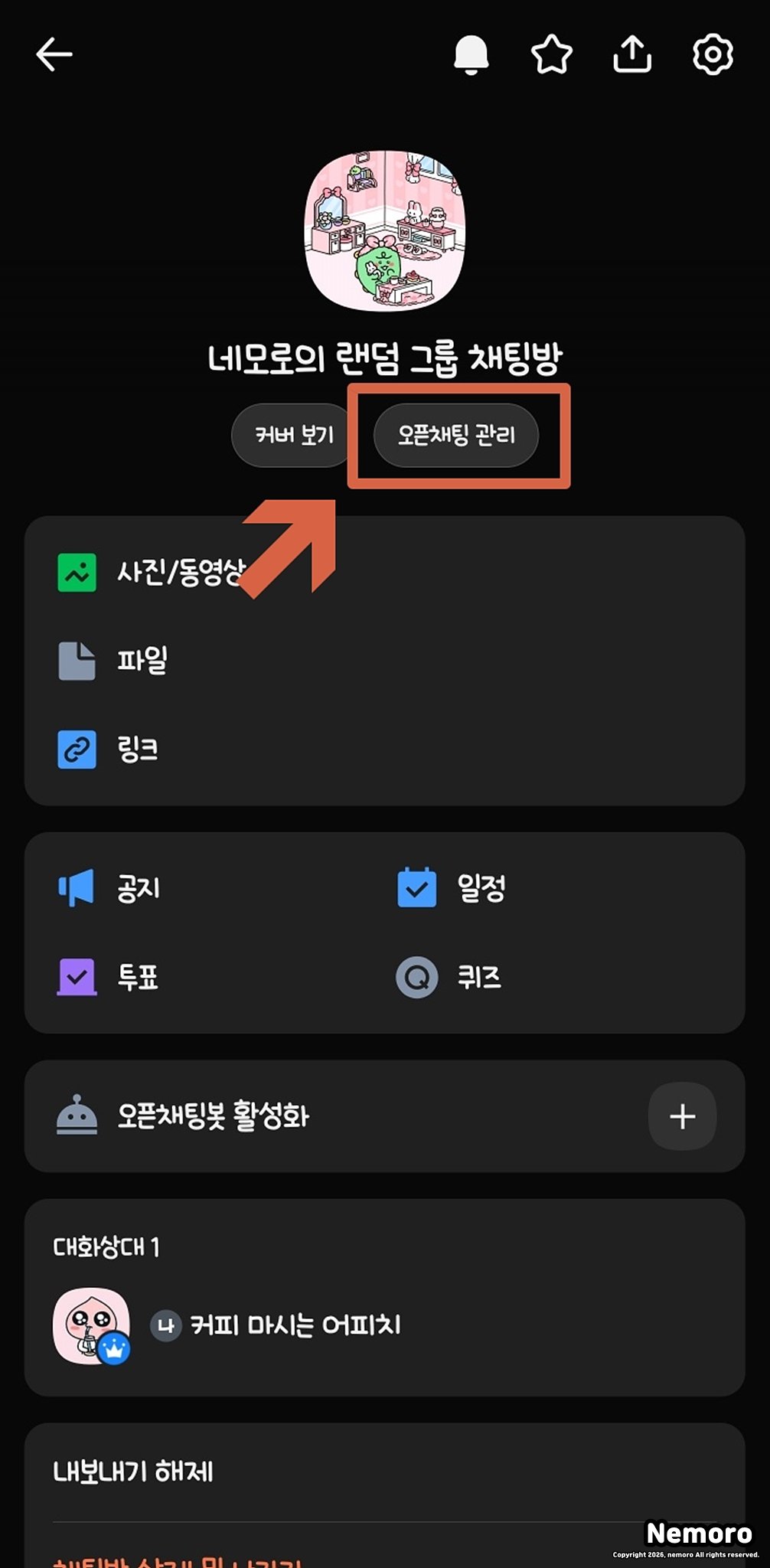 이번에는 만들어놓은 오픈채팅방을 삭제하는 방법입니다.