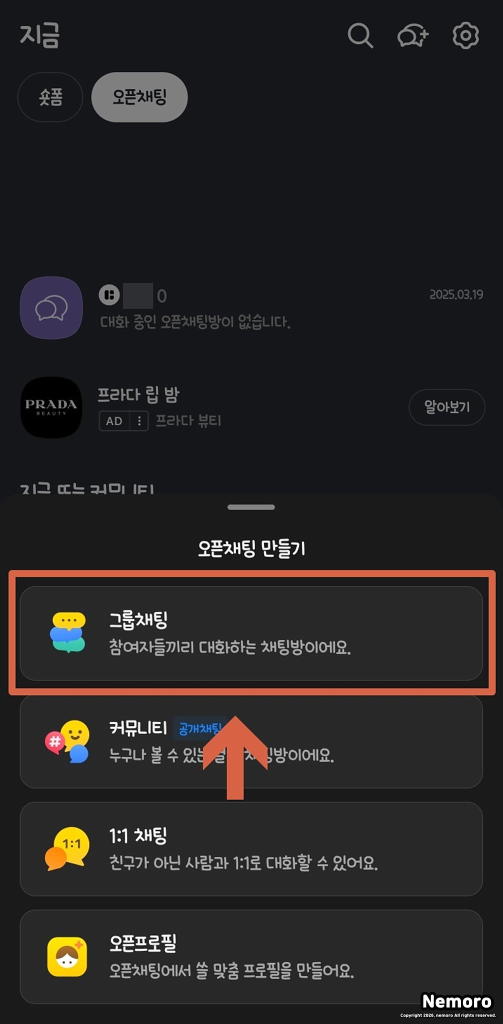 오픈 채팅방 생성 및 유형 선택