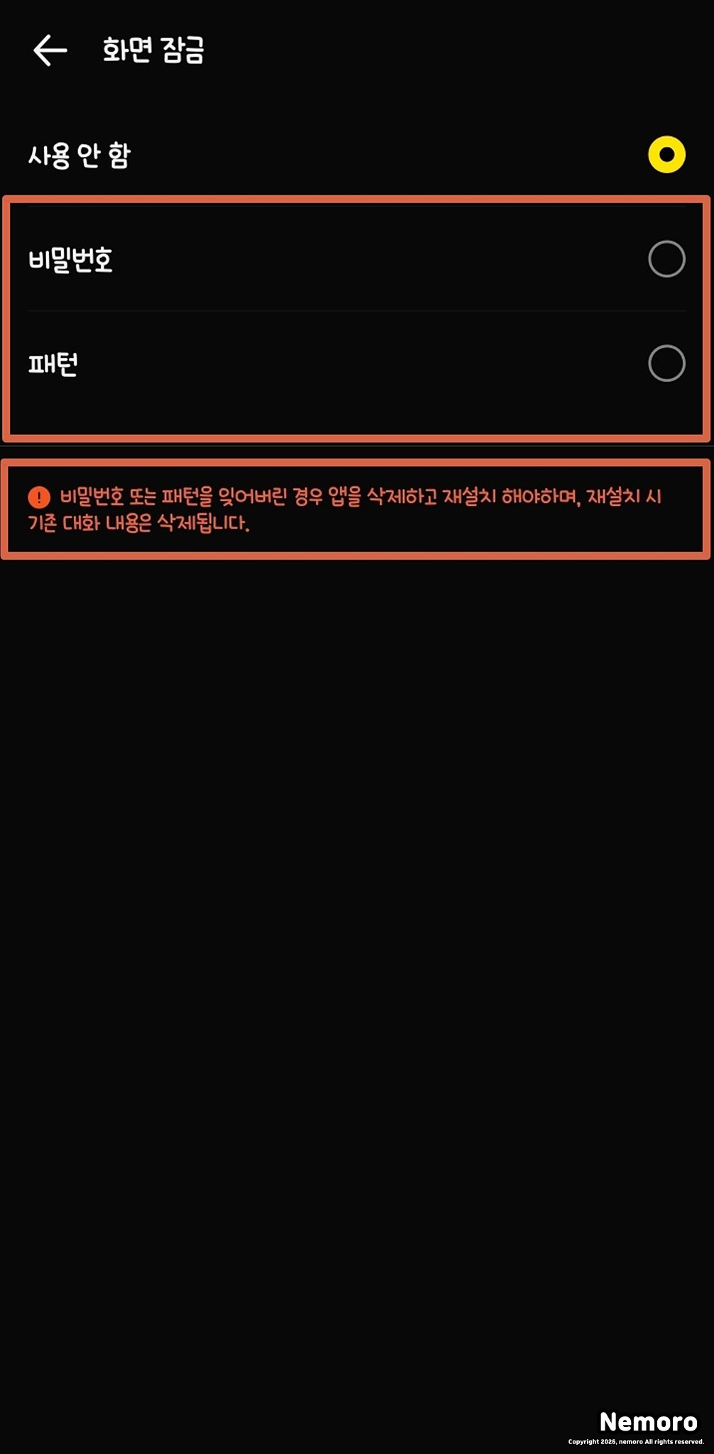 안녕하세요. 네모로입니다. 오늘은 카카오톡 화면 잠금 설정 방법 비밀번호 패턴 암호 변경에 대해서 블로그에 적어보려고 합니다.