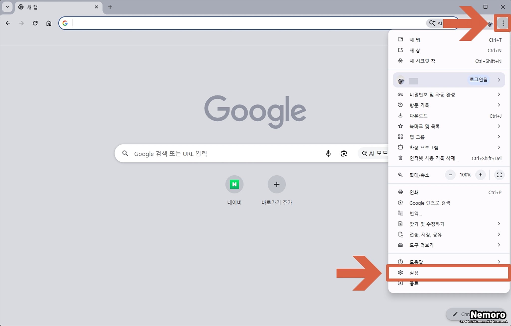 크롬 설정 클릭