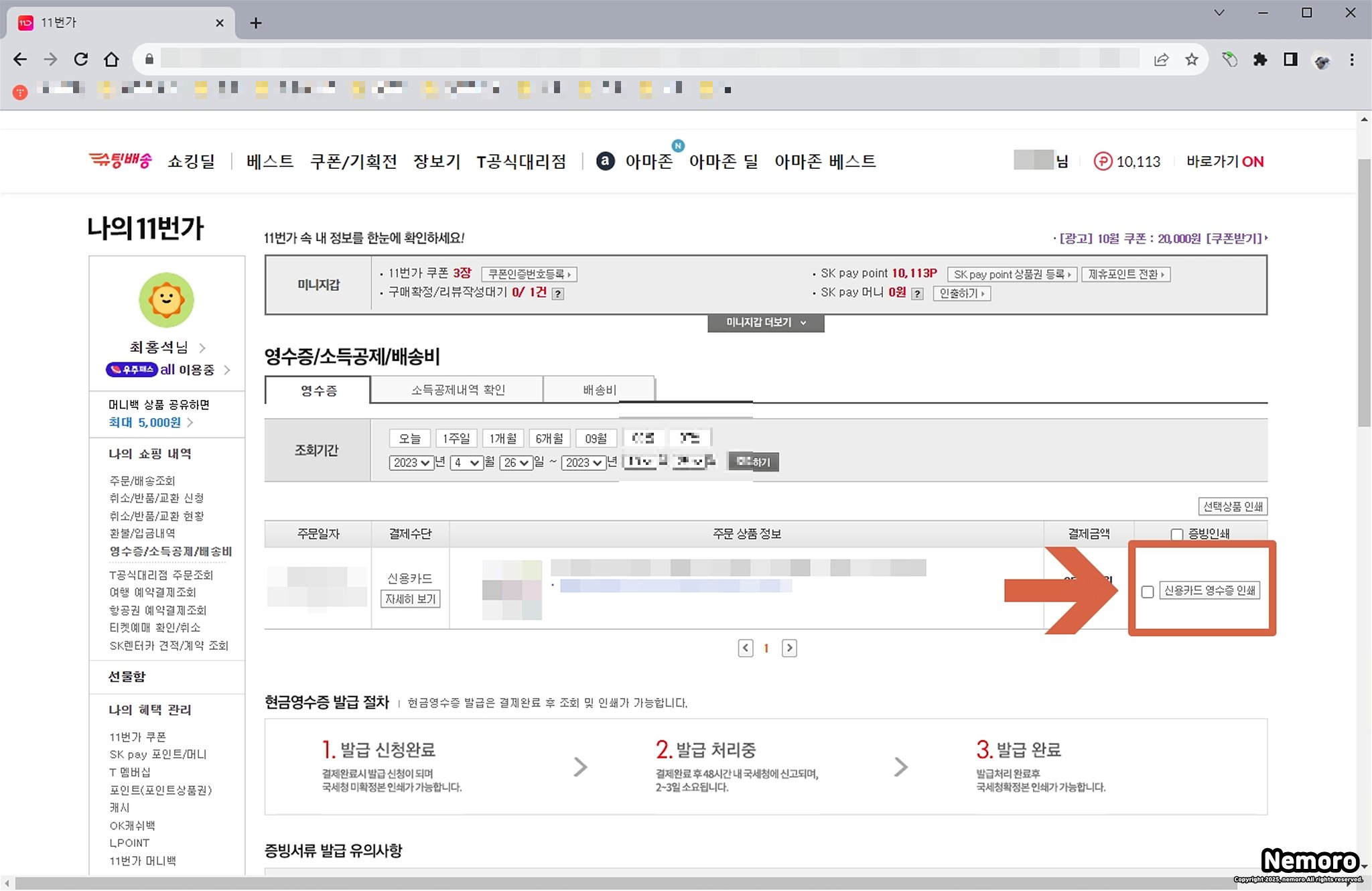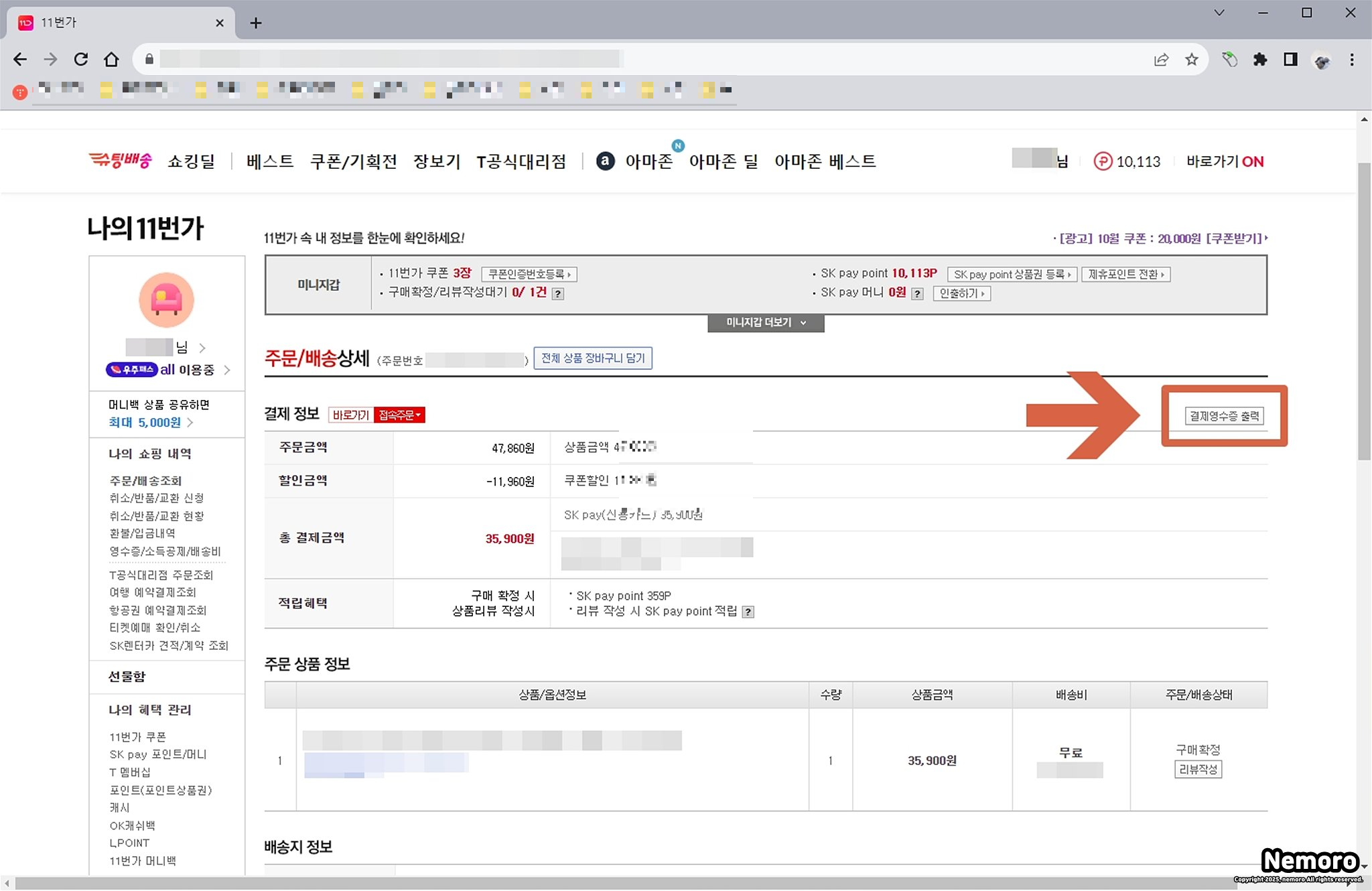 안녕하세요. 네모로입니다. 오늘은 11번가 영수증, 거래 내역서 조회 및 출력하기에 대해서 블로그에 적어보려고 합니다.