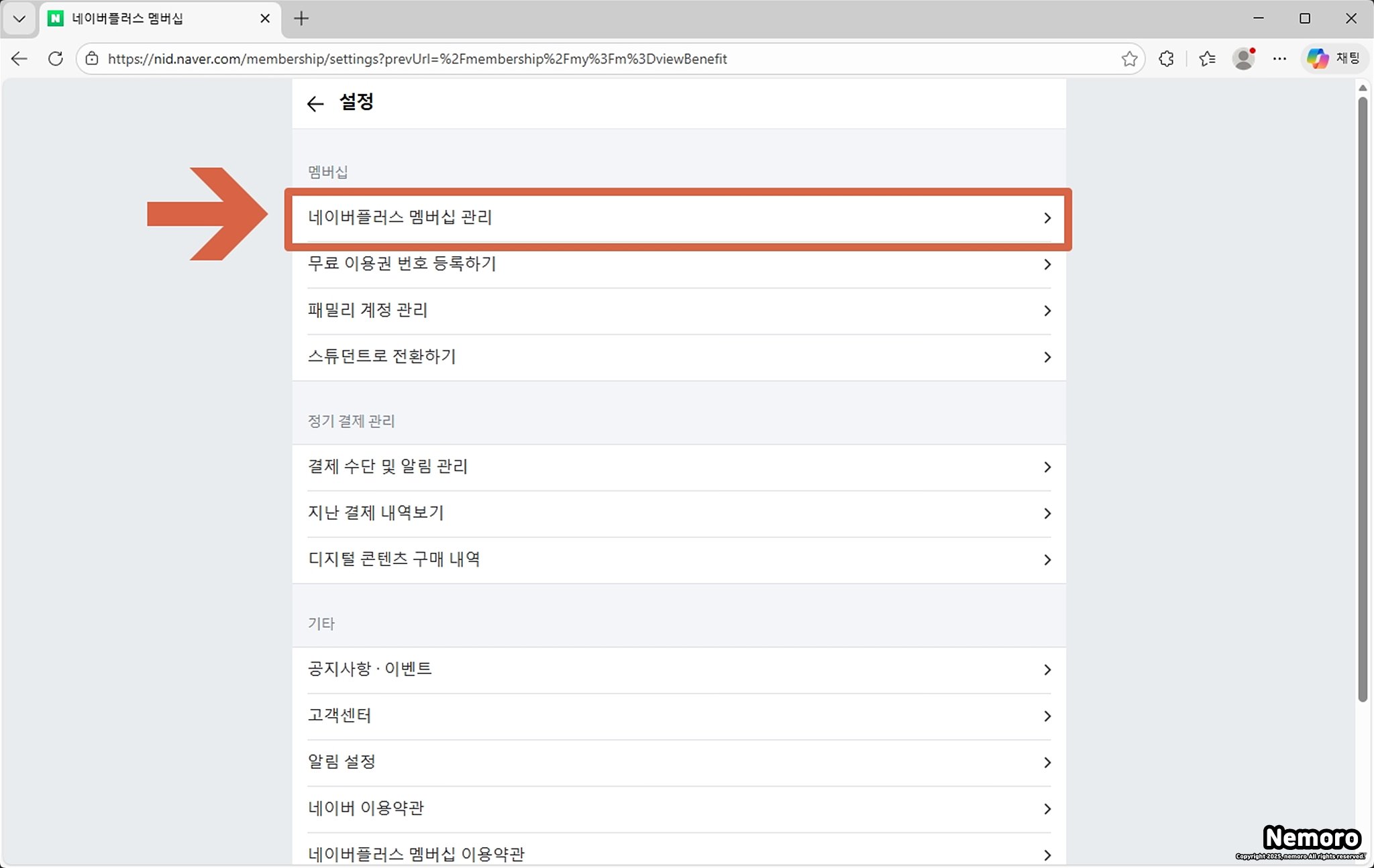 네이버 플러스 멤버십 관리 선택하기