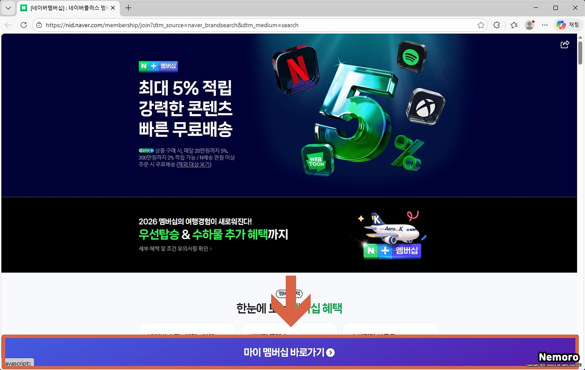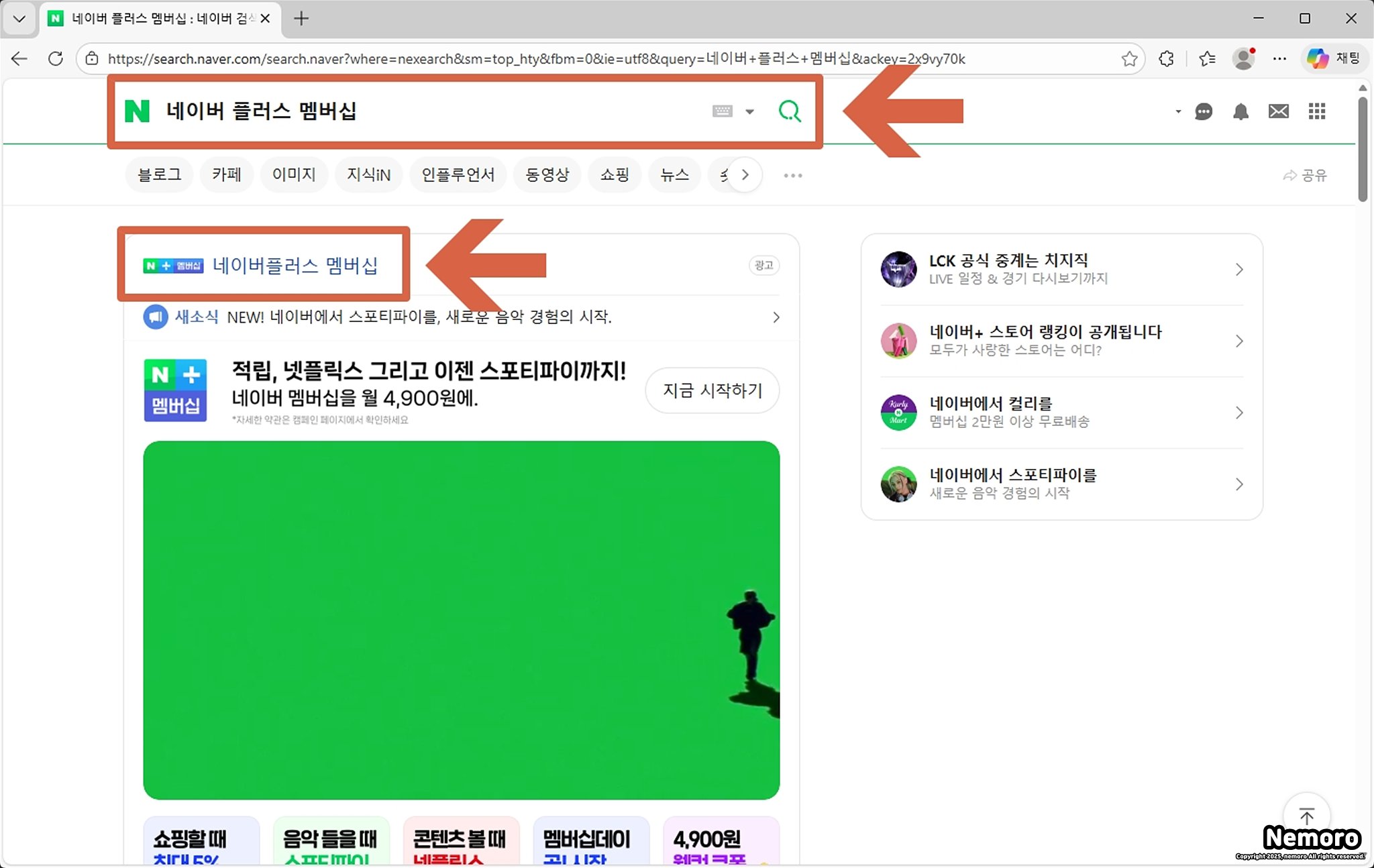 네이버 플러스 멤버십 사이트 접속하기