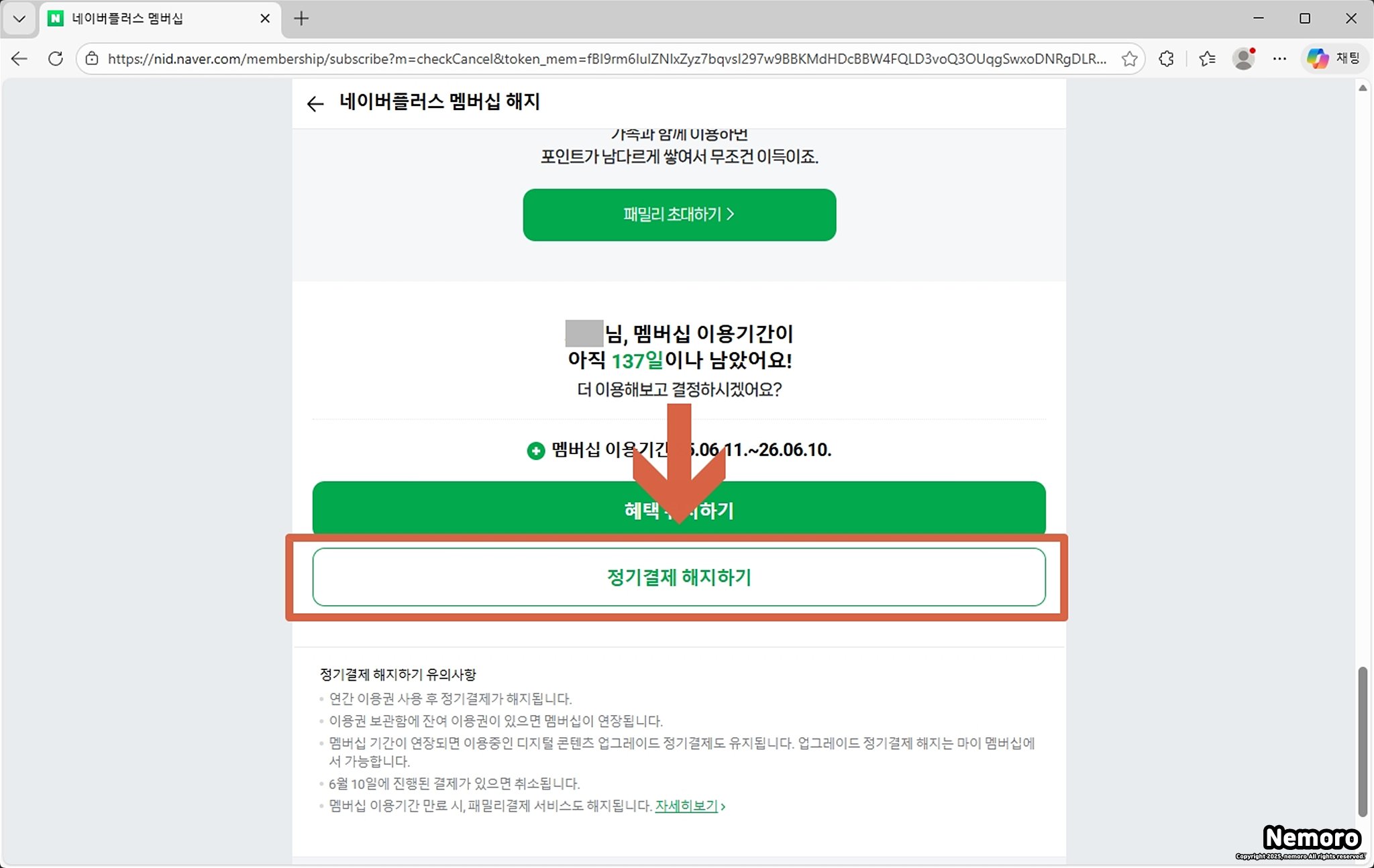 네이버 플러스 멤버십 해지하기 선택하기