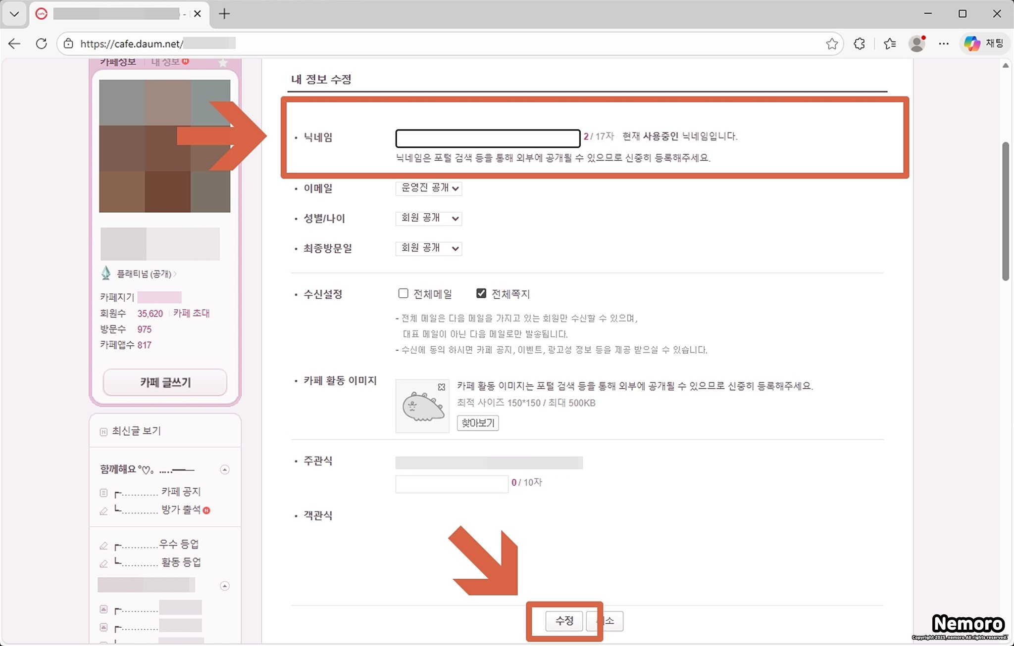 안녕하세요. 네모로입니다. 오늘은 PC에서 다음 카페 닉네임 변경하는 법 - 설정 위치부터 주의사항까지에 대해서 블로그에 적어보려고 합니다.