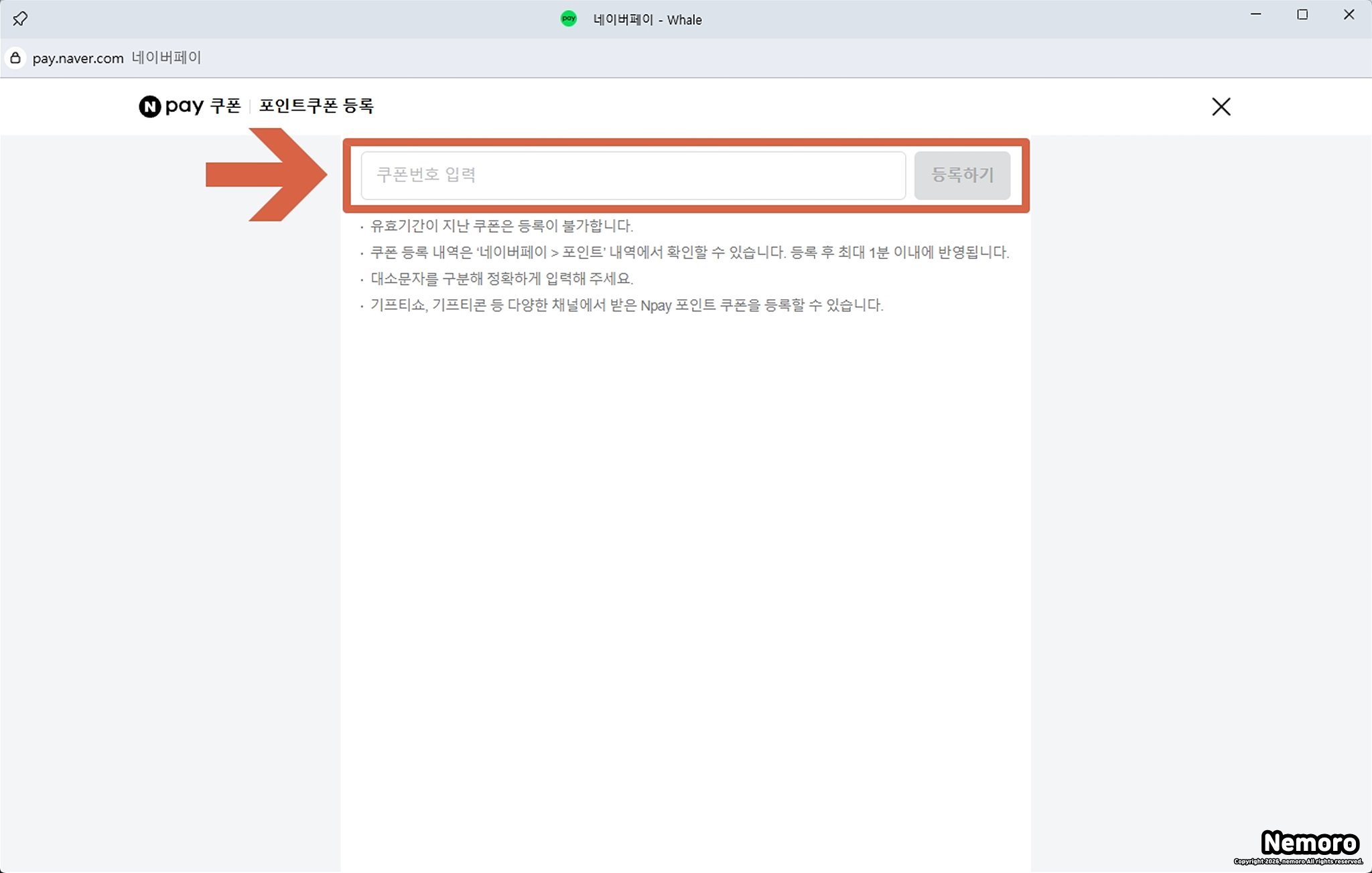 안녕하세요. 네모로입니다. 오늘은 PC 네이버페이 포인트 쿠폰 번호 등록 방법 (최신판)에 대해서 블로그에 적어보려고 합니다.