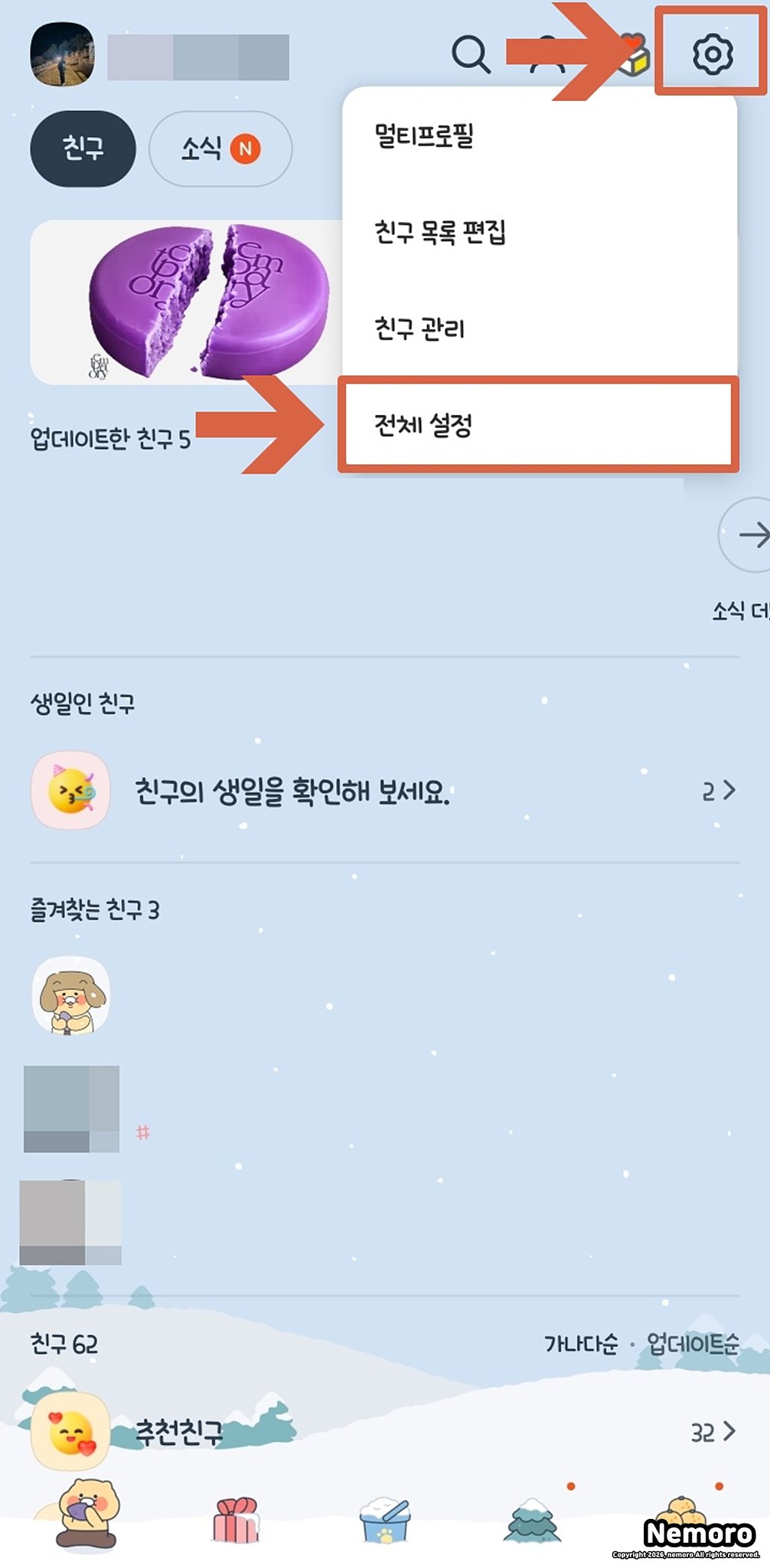 카카오톡 전체 설정 진입하기